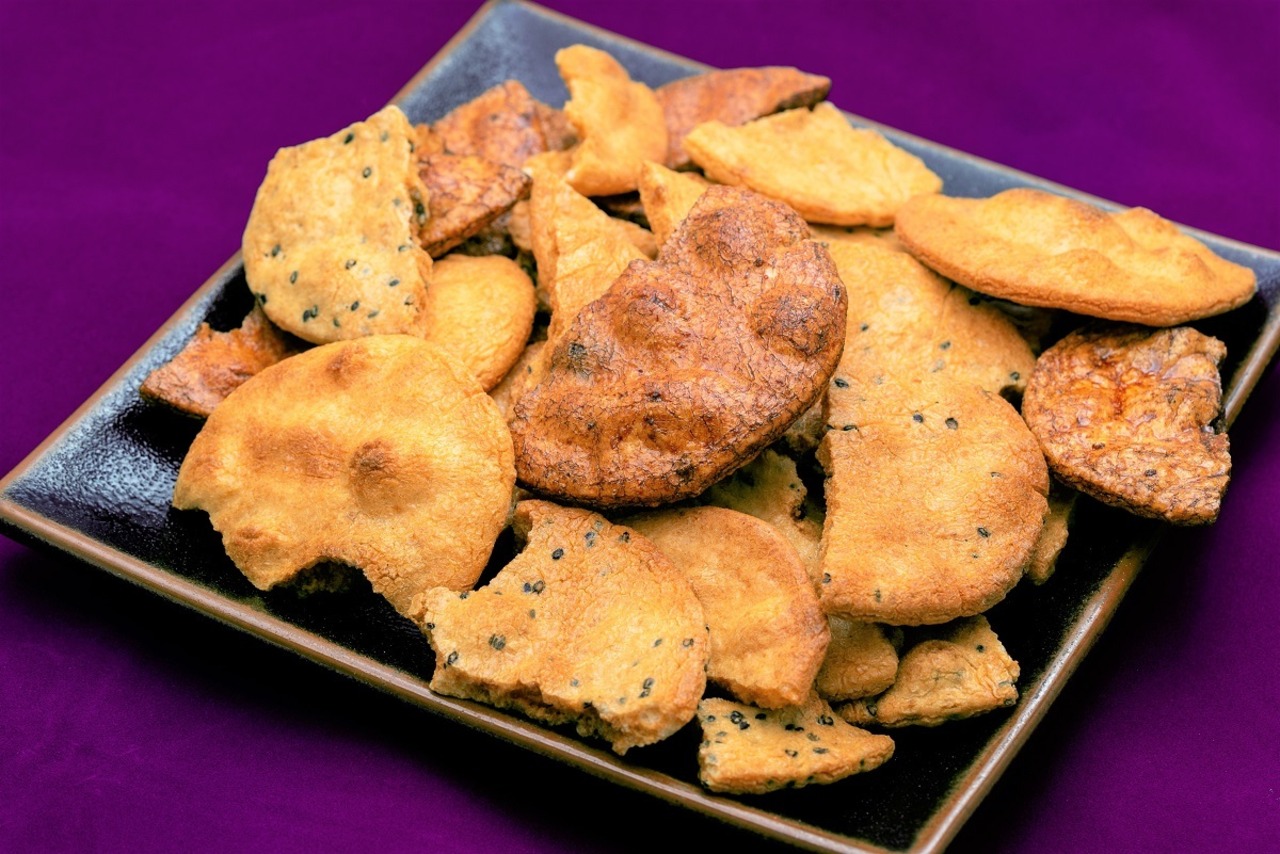 わざとせんべいを割って割れた箇所に醤油を染み込ませたこだわりのせんべいです。
