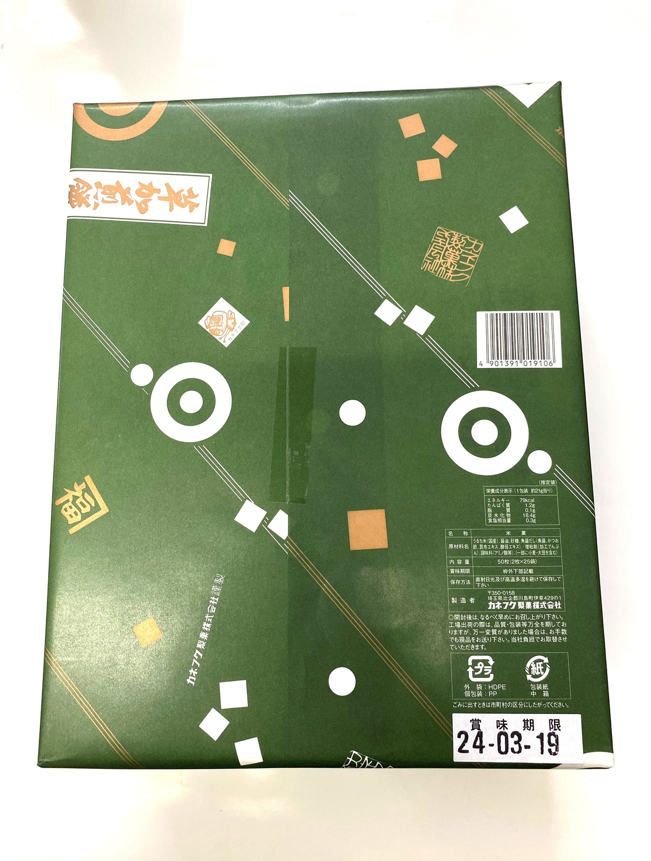1袋に2枚入りの煎餅が計25袋入っております。(50枚)